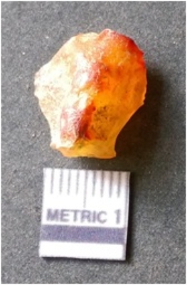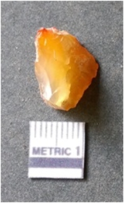| Description / विवरण | It is chalcedony flake, translucent in appearance. The piece shows sharp pointed ends and flake scars on the surface as a result of flaking. The piece shows a bulb of percussion. |