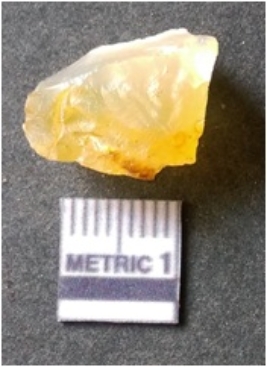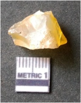 | Description / विवरण | It is chalcedony flake, translucent in appearance. The piece shows sharp pointed ends and flake scars on the surface as a result of flaking. The piece shows a bulb of percussion. |