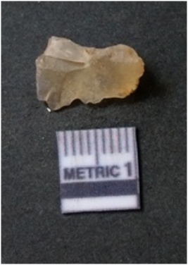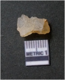 | Description / विवरण | It is chalcedony flake, translucent in appearance. The piece shows sharp pointed ends and flake scars on the surface as a result of flaking. The piece shows a bulb of percussion. |