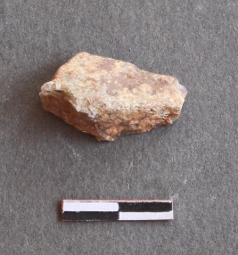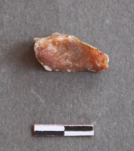 | Description / विवरण | This is a lithic debitage of pink quartz stone, bulb of percussion seen with flaked ridges. One side covered with cortex has heavy calcium deposite on the surface. |