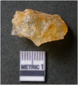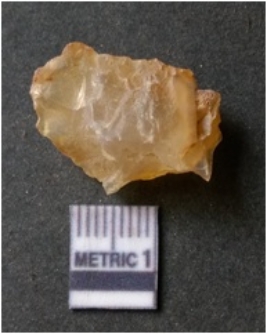 | Description / विवरण | It is chalcedony flake, translucent in appearance. The piece shows sharp pointed ends and flake scars on the surface as a result of flaking. The piece shows a bulb of percussion. |