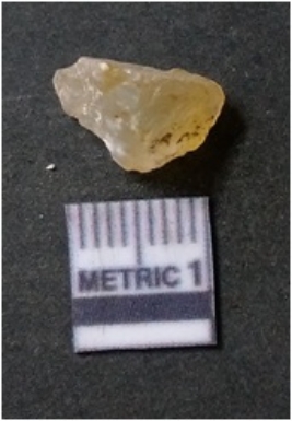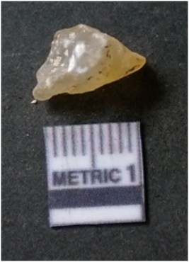 | Description / विवरण | It is chalcedony flake, translucent in appearance. The piece shows sharp pointed ends and flake scars on the surface as a result of flaking. The piece shows a bulb of percussion. |