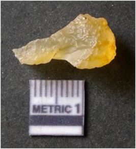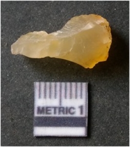 | Description / विवरण | It is chalcedony flake, translucent in appearance. The piece shows sharp pointed ends and flake scars on the surface as a result of flaking. The piece shows a bulb of percussion. |