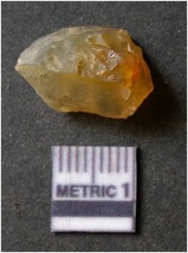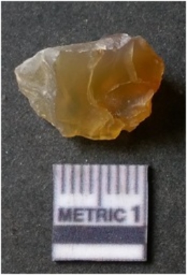 | Description / विवरण | It is chalcedony flake, translucent in appearance. The piece shows sharp pointed ends and flake scars on the surface as a result of flaking. The piece shows a bulb of percussion. |