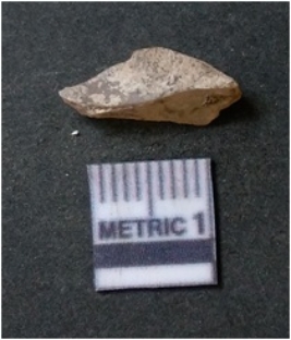| Description / विवरण | The chert piece is dark in color, with a prominent bulb of percussion and sharp flaked edges. The piece is a part of lithic debitage or raw material for lithic knapping. The piece shows clear ripple marks and bulb of percussion. |