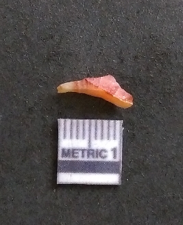 | Description / विवरण | It is a chalcedony flake, with a bulb of percussion on the ventral side. Cortex on one end. |