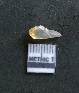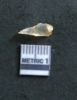 | Description / विवरण | It is a chalcedony flake, with a bulb of percussion on the ventral side. Cortex on one end. |