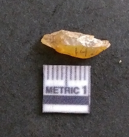 | Description / विवरण | It is a chalcedony flake, with a bulb of percussion on the ventral side. Cortex on one end. |