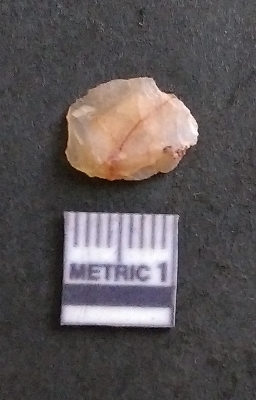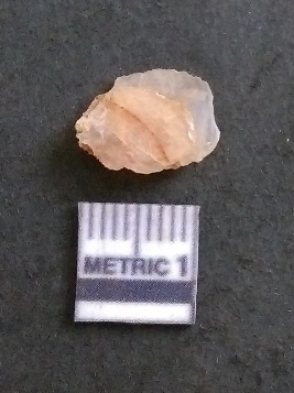 | Description / विवरण | It is a chalcedony flake, with a bulb of percussion on the ventral side. Cortex on one end. |