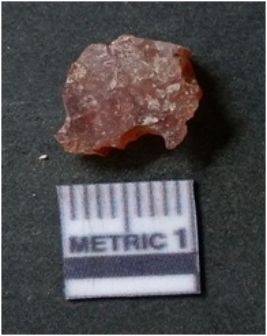 | Description / विवरण | It is chalcedony flake, translucent in appearance. The piece shows sharp pointed ends and flake scars on the surface as a result of flaking. The piece shows a bulb of percussion. |