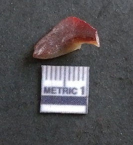 | Description / विवरण | It is a carnelian flake, with a striking platform with bulb of percussion on the ventral side. It is orangish in color, flake edges on the surface with ripple on it due to heavy percussion. |