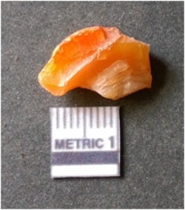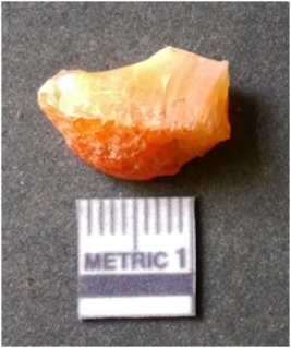 | Description / विवरण | It is chalcedony flake, translucent in appearance. The piece shows sharp pointed ends and flake scars on the surface as a result of flaking. The piece shows a bulb of percussion. |