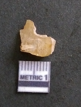 | Description / विवरण | It is a chalcedony flake, with a bulb of percussion on the ventral side. Cortex on one end. |
