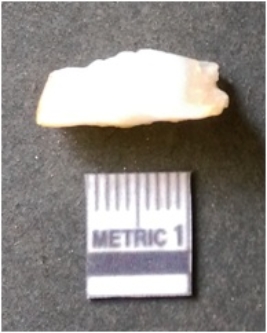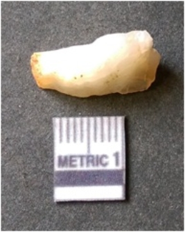 | Description / विवरण | The quartz flake has sharp flaked edges and pointed ends as a result of flaking. The piece is semi-transparent in nature with irregular fracture pattern. The piece is roughly triangular in shape and has a prominent bulb of percussion. |