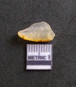 | Description / विवरण | It is a chalcedony flake, with a bulb of percussion on the ventral side. Cortex on one end. |