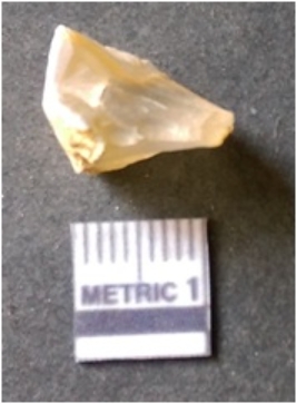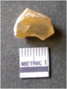 | Description / विवरण | It is chalcedony flake, translucent in appearance. The piece shows sharp pointed ends and flake scars on the surface as a result of flaking. The piece shows a bulb of percussion. |
