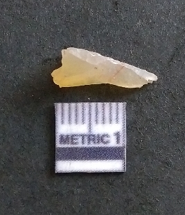 | Description / विवरण | It is a chalcedony flake, with a bulb of percussion on the ventral side. Cortex on one end. |