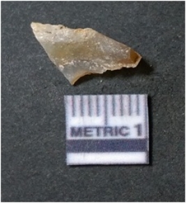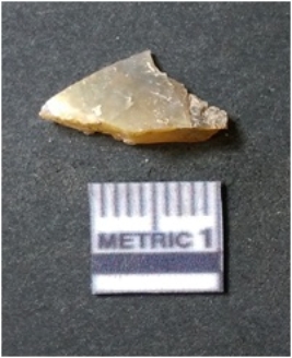 | Description / विवरण | The flake has irregular fracture pattern and sharp flaked edges as a result of lithic knapping activity. The piece is pale, with surfacial flake scars and a bulbous end. The flake is of smoky quartz variety, grayish in colour and translucent in appearance. |