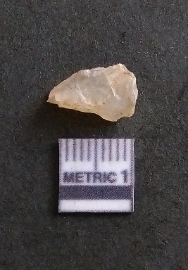 | Description / विवरण | It is a chalcedony flake, with a bulb of percussion on the ventral side. Cortex on one end. |