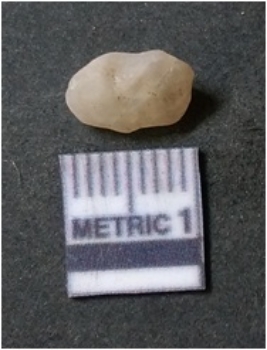 | Description / विवरण | The quartz flake has sharp flaked edges and pointed ends as a result of flaking. The piece is semi-transparent in nature with irregular fracture pattern. The piece is roughly triangular in shape and has a prominent bulb of percussion. |