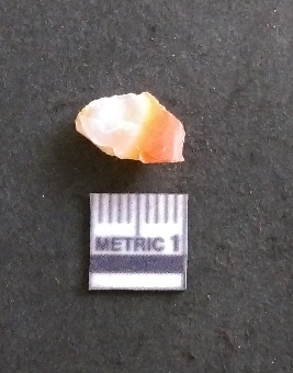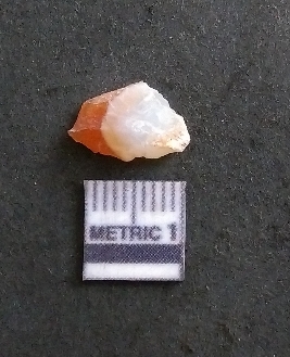 | Description / विवरण | It is a chalcedony flake, with a bulb of percussion on the ventral side. Cortex on one end. |