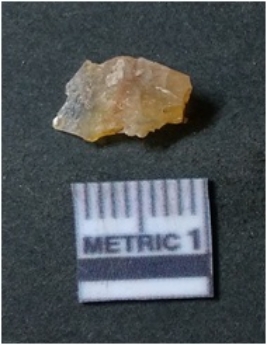| Description / विवरण | It is chalcedony flake, translucent in appearance. The piece shows sharp pointed ends and flake scars on the surface as a result of flaking. The piece shows a bulb of percussion. |