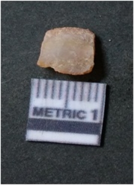 | Description / विवरण | It is chalcedony flake, translucent in appearance. The piece shows sharp pointed ends and flake scars on the surface as a result of flaking. The piece shows a bulb of percussion. |