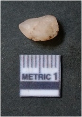 | Description / विवरण | The quartz flake has sharp flaked edges and pointed ends as a result of flaking. The piece is semi-transparent in nature with irregular fracture pattern. The piece is roughly triangular in shape and has a prominent bulb of percussion. |