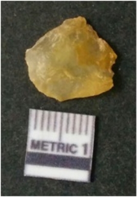| Description / विवरण | It is chalcedony flake, translucent in appearance. The piece shows sharp pointed ends and flake scars on the surface as a result of flaking. The piece shows a bulb of percussion. |