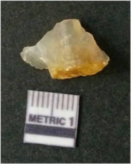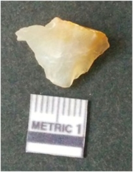 | Description / विवरण | It is chalcedony flake, translucent in appearance. The piece shows sharp pointed ends and flake scars on the surface as a result of flaking. The piece shows a bulb of percussion. |