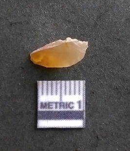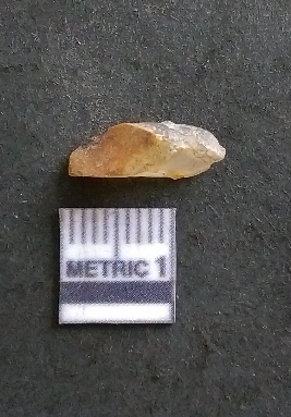 | Description / विवरण | It is a chalcedony flake, with a bulb of percussion on the ventral side. Cortex on one end. |