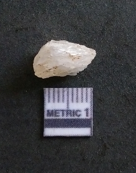 | Description / विवरण | It is a chalcedony flake, with a bulb of percussion on the ventral side. Cortex on one end. |