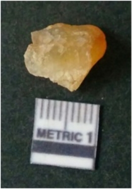 | Description / विवरण | It is chalcedony flake, translucent in appearance. The piece shows sharp pointed ends and flake scars on the surface as a result of flaking. The piece shows a bulb of percussion. |