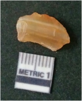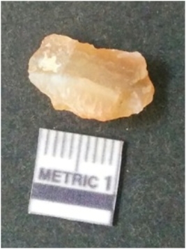 | Description / विवरण | It is chalcedony flake, translucent in appearance. The piece shows sharp pointed ends and flake scars on the surface as a result of flaking. The piece shows a bulb of percussion. |