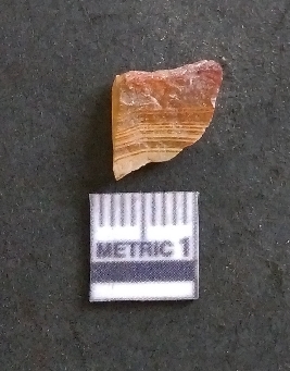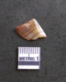 | Description / विवरण | It is an agate flake with bulb of percussion on ventral side of the fragment. Flake ridges on the surface. |