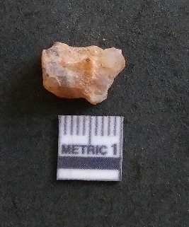 | Description / विवरण | It is a chalcedony flake, with a bulb of percussion on the ventral side. Cortex on one end. |
