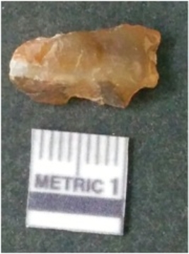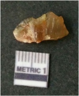 | Description / विवरण | It is chalcedony flake, translucent in appearance. The piece shows sharp pointed ends and flake scars on the surface as a result of flaking. The piece shows a bulb of percussion. |