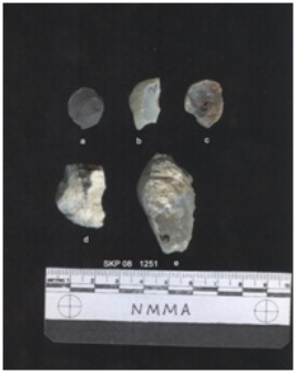 | Description / विवरण | It is a chert flake, with a striking platform, cortex on one end; there are many flake scars with ripples on it. |