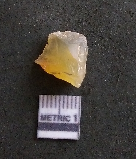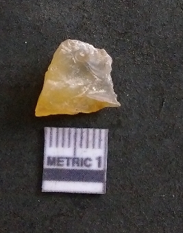 | Description / विवरण | It is a chalcedony flake, with a bulb of percussion on the ventral side. Cortex on one end. |
