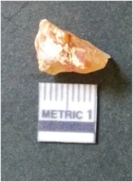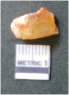 | Description / विवरण | It is chalcedony flake, translucent in appearance. The piece shows sharp pointed ends and flake scars on the surface as a result of flaking. The piece shows a bulb of percussion. |