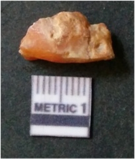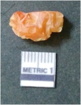 | Description / विवरण | It is chalcedony flake, translucent in appearance. The piece shows sharp pointed ends and flake scars on the surface as a result of flaking. The piece shows a bulb of percussion. |