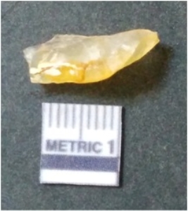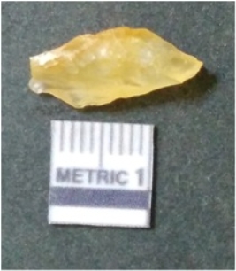| Description / विवरण | It is chalcedony flake, translucent in appearance. The piece shows sharp pointed ends and flake scars on the surface as a result of flaking. The piece shows a bulb of percussion. |