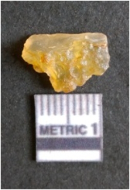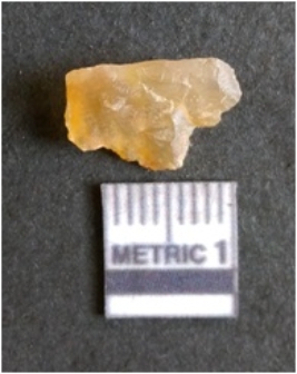 | Description / विवरण | The chalcedony flake is pale in color and translucent in appearance. The piece has s harp flaked ends and a bulbous end due to flaking. The flake has a crypto-crystalline silica matrix. |