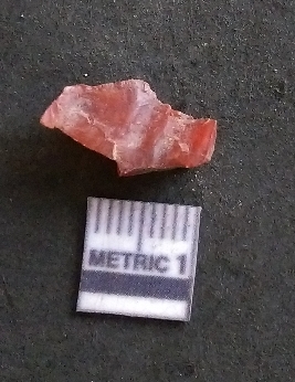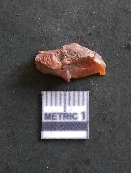 | Description / विवरण | It is a carnelian flake, with a striking platform with bulb of percussion on the ventral side. It is orangish in color, flake edges on the surface with ripple on it due to heavy percussion. |