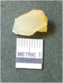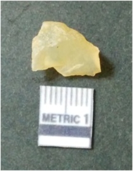 | Description / विवरण | It is chalcedony flake, translucent in appearance. The piece shows sharp pointed ends and flake scars on the surface as a result of flaking. The piece shows a bulb of percussion. |