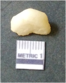 | Description / विवरण | The quartz flake has sharp flaked edges and pointed ends as a result of flaking. The piece is semi-transparent in nature with irregular fracture pattern. The piece is roughly triangular in shape and has a prominent bulb of percussion. |