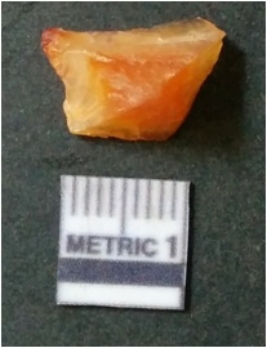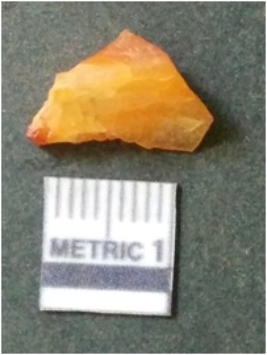 | Description / विवरण | It is chalcedony flake, translucent in appearance. The piece shows sharp pointed ends and flake scars on the surface as a result of flaking. The piece shows a bulb of percussion. |
