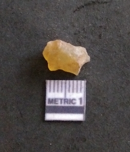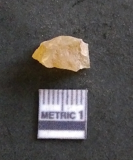 | Description / विवरण | It is a chalcedony flake, with a bulb of percussion on the ventral side. Cortex on one end. |