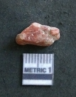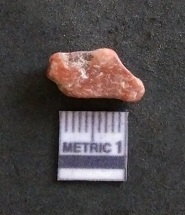 | Description / विवरण | It is a carnelian flake, with a striking platform with bulb of percussion on the ventral side. It is orangish in color, flake edges on the surface with ripple on it due to heavy percussion. |