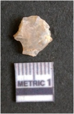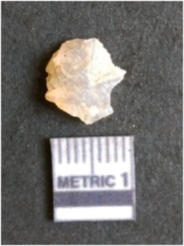 | Description / विवरण | The chalcedony flake is pale in color and translucent in appearance. The piece has s harp flaked ends and a bulbous end due to flaking. The flake has a crypto-crystalline silica matrix. |